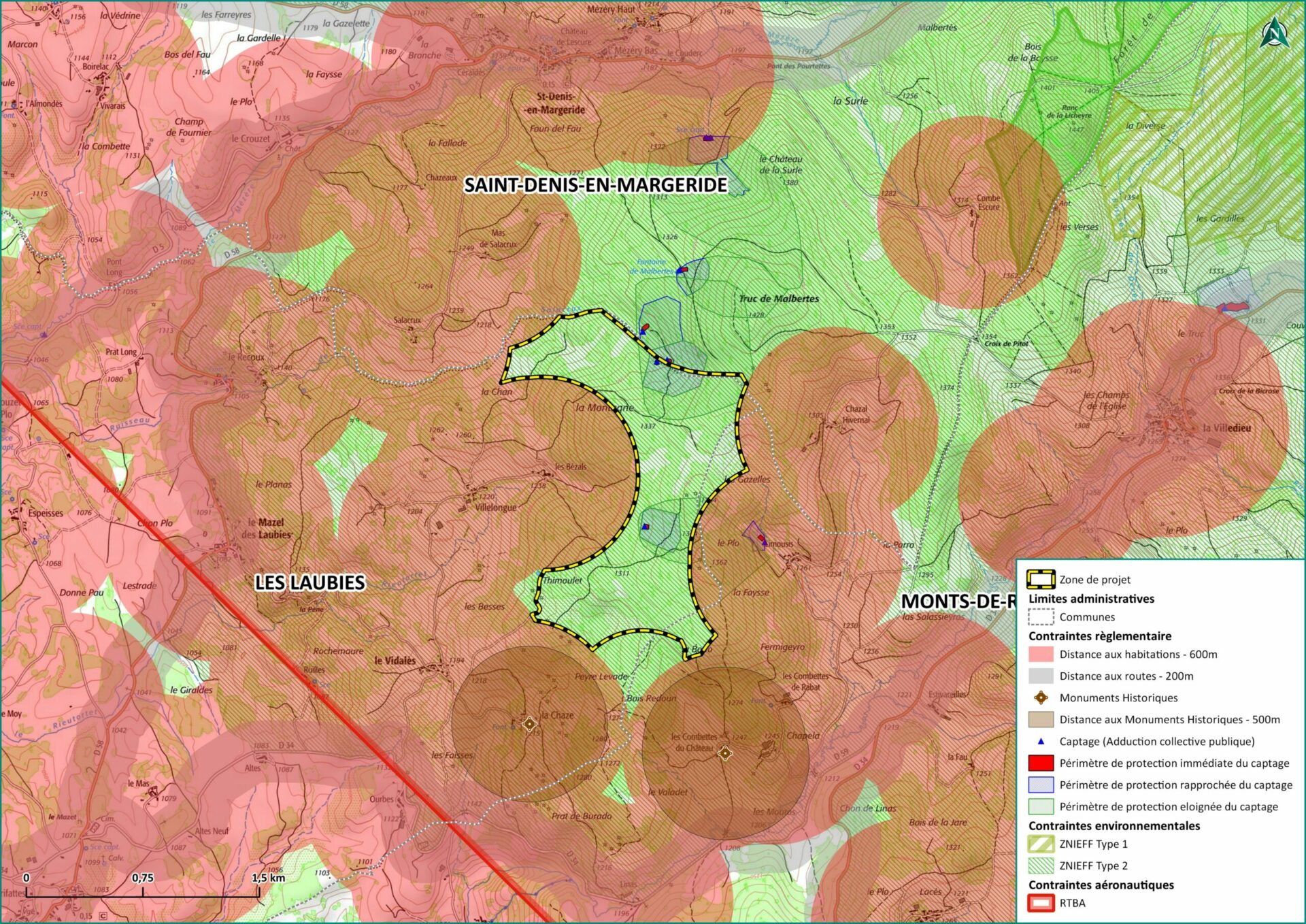 Le département de la Lozère dispose de nombreux atouts pour développer une activité de production d’électricité d’origine éolienne. Le secteur d’étude se caractérise par des vents de 7 m/s à 100 m, particulièrement propices pour le développement de projets éoliens.