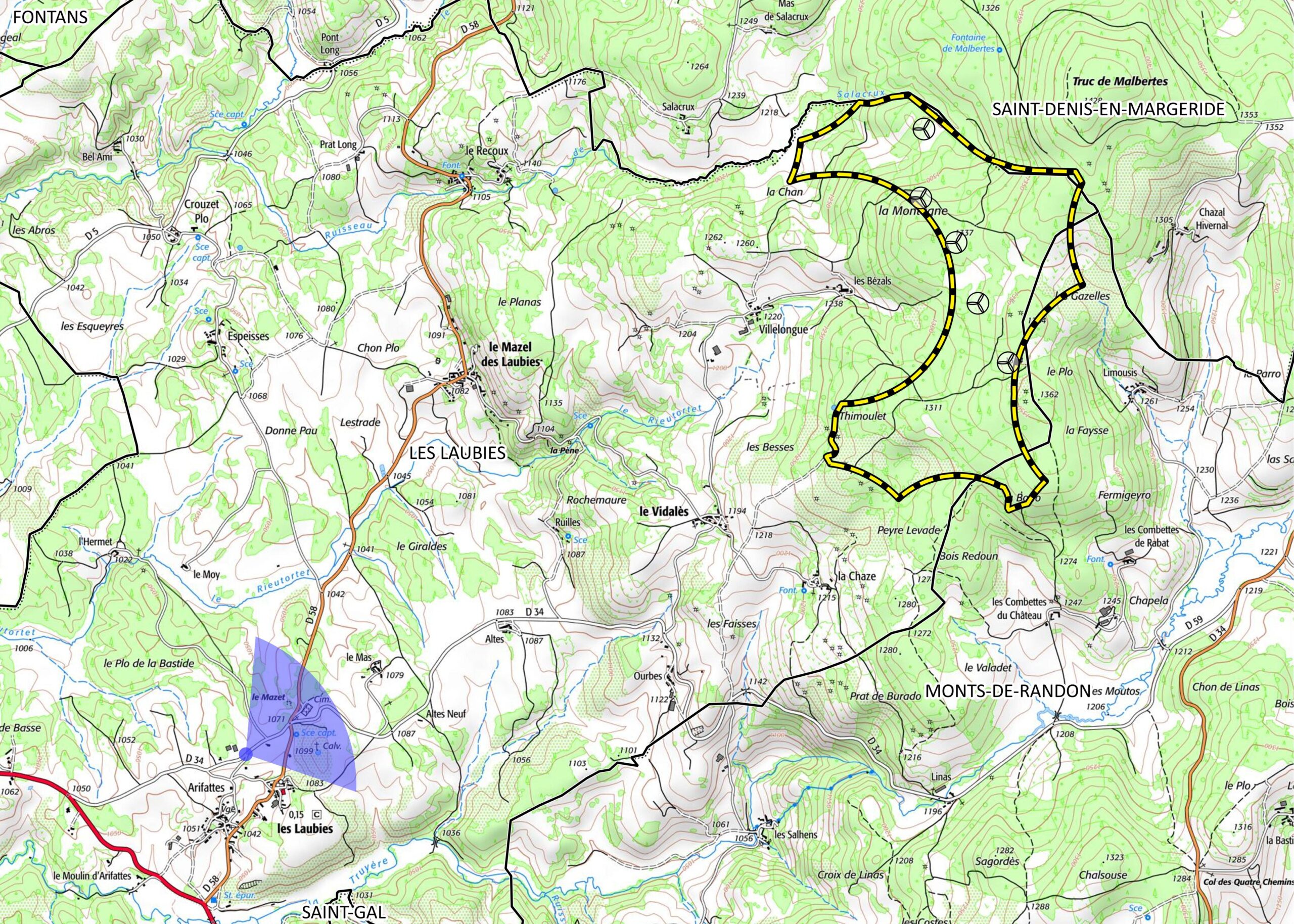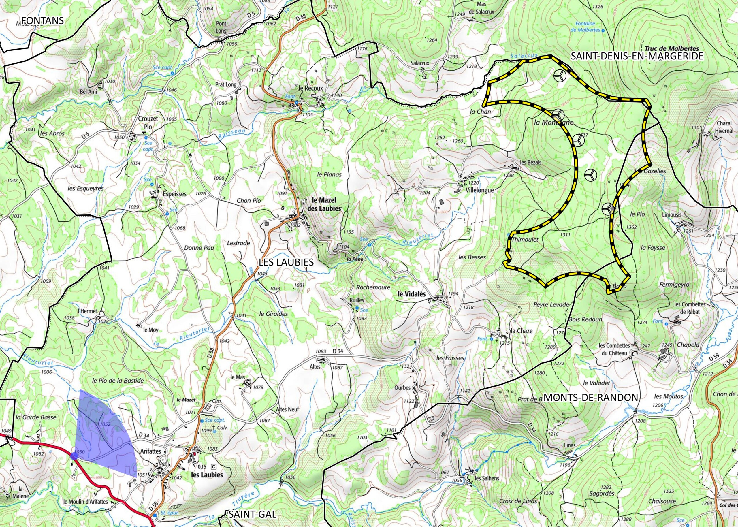Le projet éolien des Laubies est situé sur la commune des Laubies. Ce projet se situe à l’est de la route départementale 58.